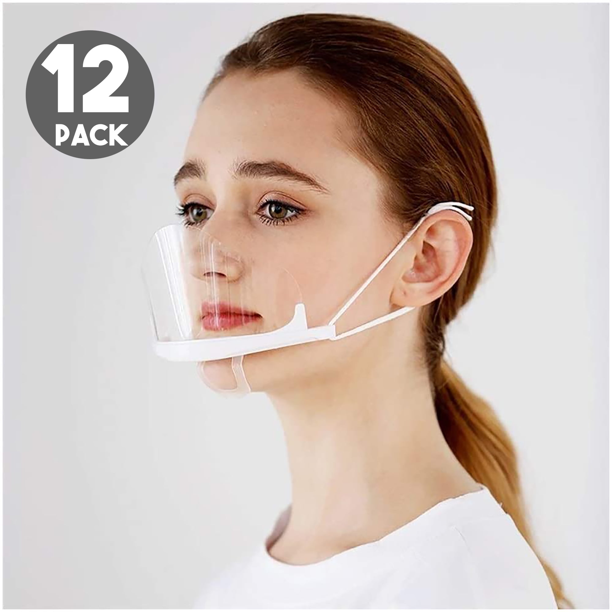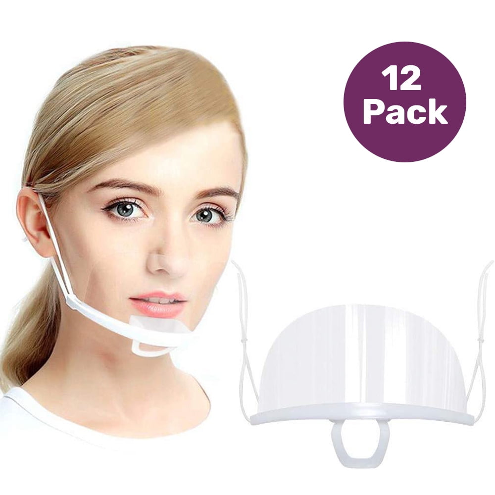 Transparent Reusable Anti Fog Anti Saliva Mouth Shield Face Cover Adjustable White 12 Pack Walmart Com