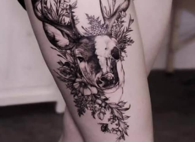 10 Deer Skull With Flowers Tattoo Designs Petpress